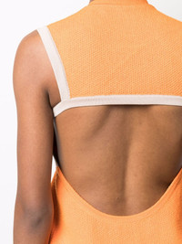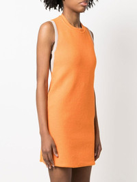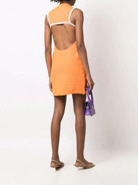 Sorbetto knitted mini dress This Sorbetto knitted mini dress from Jacquemus is defined by its large back cut-out, showcasing the label's fondness for daring details. Highlights - Orange/white - Organic cotton-blend - Contrasting trim - Knitted construction - Crew neck - Sleeveless - Cut-out detailing - Shift style - Curved hem - Above-knee length Made in Italy Composition Polyamide 51%, Organic Cotton 41%, Spandex/Elastane 8% SIZE & FIT Model measurements Height 5 ft 10 in(1.79 m) Bust/Chest 33.07 in(84 cm) Hips 35.03 in(89 cm) Waist 24.4 in(62 cm) FittingInformation This piece fits true to size. We recommend you get your regular size Cut for a slim fit Made with a mid-weight stretch fabric Washing instructions Hand Wash