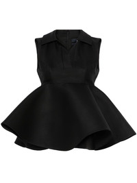Spalla blouse Highlights - Black - Virgin wool blend - Twill weave - Rear zip fastening - V-neck - Spread collar - Sleeveless - Peplum waist - Curved hem Imported Composition Virgin Wool 71%, Cotton 48%, Acetate 47%, Silk 29%, Elastane 5% SIZE & FIT Model measurements Height 5 ft 10 in(1.78 m) Bust/Chest 33.85 in(86 cm) Hips 36.61 in(93 cm) Waist 26.77 in(68 cm) FittingInformation Designed for a close fit at the chest with a loose fit over the waist and hips Made from a midweight non-stretch fabric