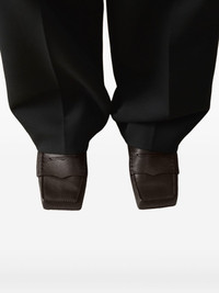square-toe loafers Highlights - Dark brown - Leather upper - Penny strap detail - Square toe - Slip-on style - Flat sole Made in Italy Composition Lining: Lambskin 100% Sole: Leather 100% Outer: Calf Leather 100%