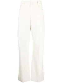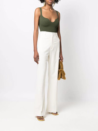 Le Pantalon Sauge flared trousers Highlights - Off white - High waist - Belt loops - Straight leg - Hook and zip fly fastening Imported Composition Outer: Viscose 53%, Cotton 46%, Virgin Wool 45%, Spandex/Elastane 2% Lining: Acetate 48%, Spandex/Elastane 6% SIZE & FIT Model measurements Height 5 ft 10 in(1.79 m) Bust/Chest 33.07 in(84 cm) Hips 35.03 in(89 cm) Waist 24.4 in(62 cm) FittingInformation This piece fits true to size. We recommend you get your regular size Designed to be fitted at the waist and hips, loose over the leg Made with a mid-weight stretch fabric Washing instructions Dry Clean Only