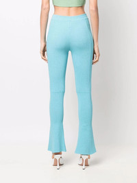 stretch bootcut trousers turquoise blue stretch linen blend stretch-design ribbed knit mid-rise bootcut floor-length Imported Composition Viscose 54%, Polyamide 26%, Linen/Flax 16%, Spandex/Elastane 4% SIZE & FIT Model measurements Height 5 ft 10 in(1.79 m) Bust/Chest 33.07 in(84 cm) Hips 35.82 in(91 cm) Waist 24.01 in(61 cm) Measurement INSIDE LEG 31.88 in(81 cm) HIPS 28.34 in(72 cm) WAIST 22.04 in(56 cm) Washing instructions Hand Wash