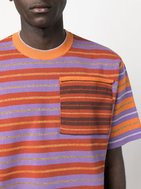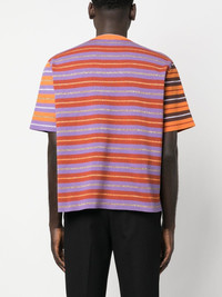 stripe-print T-shirt This crew-neck T-shirt from Jacquemus is characterised by a horizontal stripe print and is completed with a patch to the chest. Highlights - Multicolour - Horizontal stripe print - Crew neck - Short sleeves - Chest patch pocket Imported Composition Viscose 88%, Polyamide 12% SIZE & FIT Model measurements Height 6 ft 2 in(1.87 m) Bust/Chest 36.41 in(92.5 cm) Hips 37 in(94 cm) Waist 29.52 in(75 cm) Measurement CHEST 51.96 in(132 cm) LENGTH 27.55 in(70 cm) FittingInformation This piece fits true to size. We recommend you get your regular size Cut for a relaxed fit Made with a mid-weight fabric Washing instructions Hand Wash