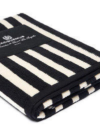 striped beach towel Highlights - Black - Wraparound style - Applique logo - Terry-cloth effect - Rectangle shape Made in Italy Composition Cotton 80%, Linen/Flax 20% Washing instructions Read Manufacturer Guidelines