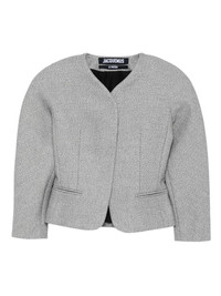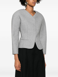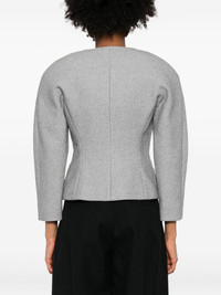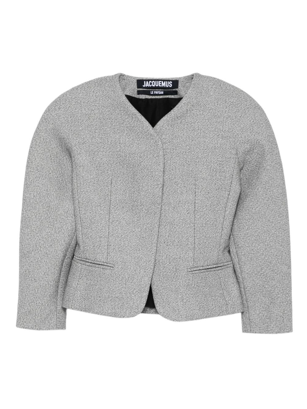textured-fabric fitted jacket Highlights - Light grey - Textured weave - Fitted silhouette - Long sleeves Imported Composition Outer: Cotton 71%, Virgin Wool 29% Lining: Viscose 52%, Cotton 48% SIZE & FIT Model measurements Height 5 ft 10 in(1.77 m) Bust/Chest 33.07 in(84 cm) Hips 37 in(94 cm) Waist 24.8 in(63 cm) Washing instructions Dry Clean Only