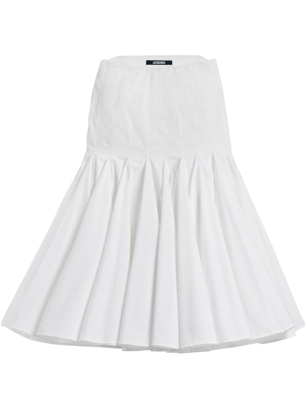 The Agave skirt Highlights - White - Concealed front fastening - Pleated edge - Faux pocket detail Made in Italy Composition Lining: Cotton 55%, Polyester 45% Outer: Cotton 100%