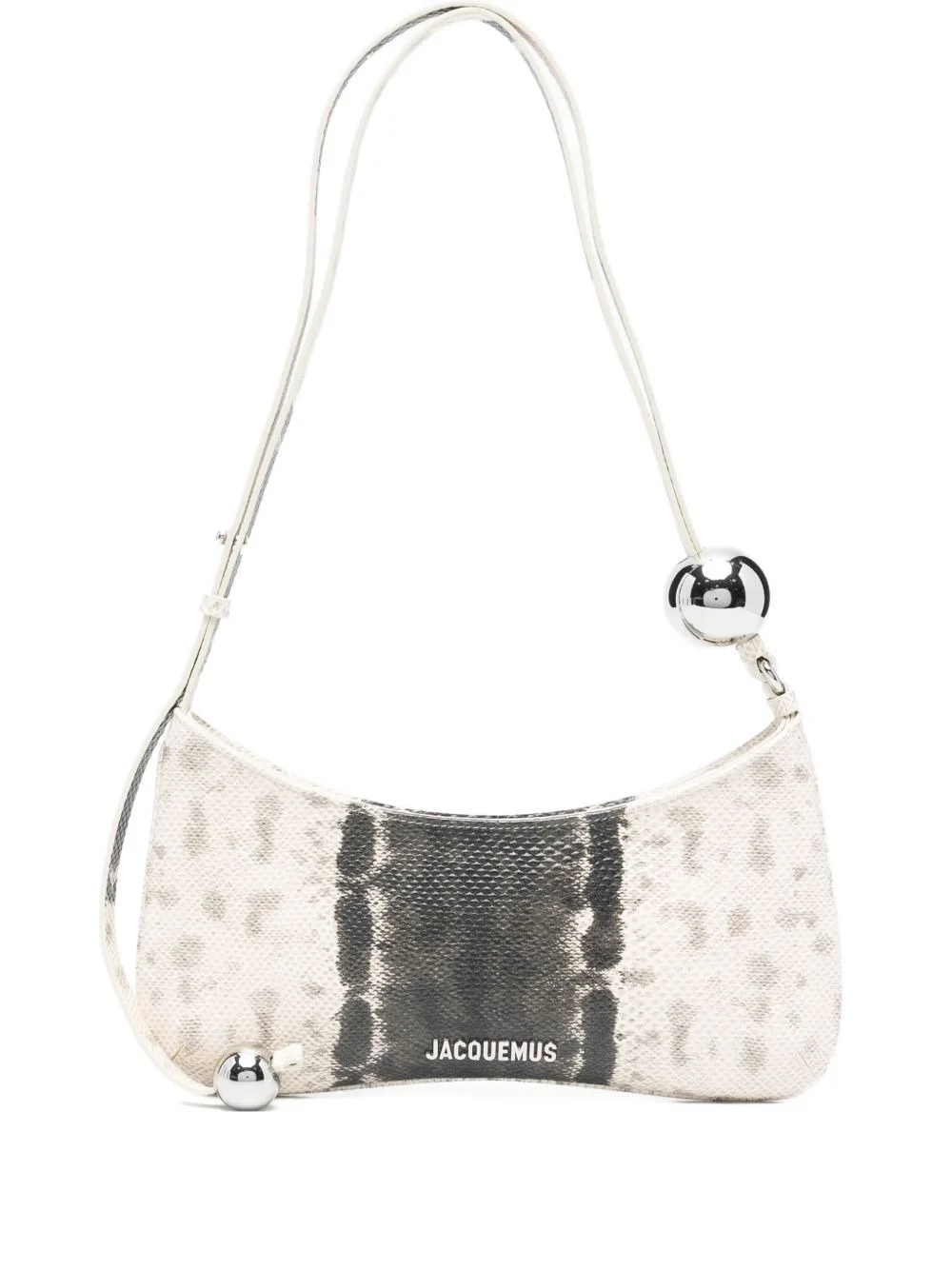 The Bisou Perle ball-embellished shoulder bag Highlights - Beige - Leather - Curved shape - Metallic ball embellishments - Zip fastening Made in Italy Composition Outer: Calf Leather 100% SIZE & FIT Model measurements Height 5 ft 9 in(1.75 m) Bust/Chest 32.67 in(83 cm) Hips 36.22 in(92 cm) Waist 24.8 in(63 cm) Measurement DEPTH 0.78 in(2 cm) HEIGHT 3.93 in(10 cm) WIDTH 10.23 in(26 cm)
