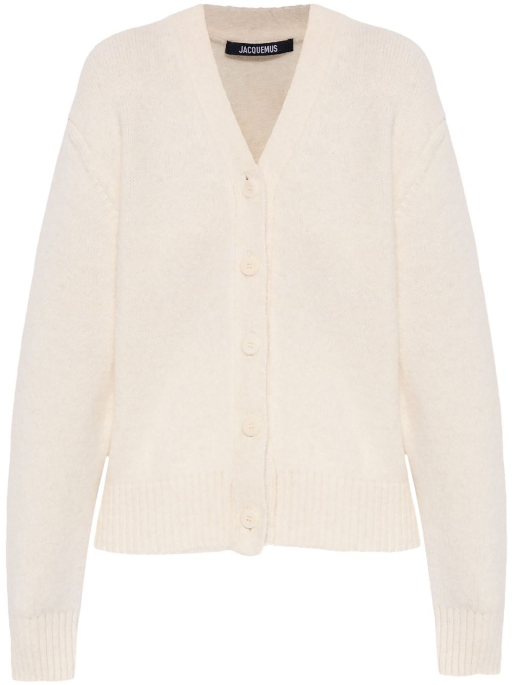 The Jacquemus cardigan Highlights - Light beige - Front button fastening - Ribbed trim - Jacquard logo motif Imported Composition Alpaca Wool 56%, Polyamide 34%, Merino 10%