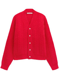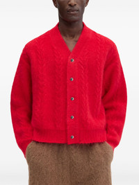 The Nuvola cardigan Highlights - Scarlet - Front button fastening - Cable knit - Long sleeves - When buying this unisex item, keep in mind that it is graded in standard men's sizing. Made in Italy Composition Mohair 81%, Polyamide 17%, Elastane 2% Washing instructions Read Manufacturer Guidelines