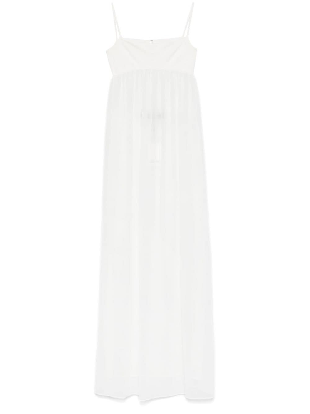 The Peplo Robe dress Highlights - White - Jersey texture - Rear zip fastening - Square neck - Spaghetti straps - Muslin skirt - Cut-out detailing - Empire line - Flared hem - Full lining - Long length Imported Composition Outer: Polyester 100%, Viscose 92%, Elastane 8% Lining: Polyamide 69%, Elastane 31% SIZE & FIT Model measurements Height 5 ft 10 in(1.78 m) Bust/Chest 31.49 in(80 cm) Hips 37 in(94 cm) Waist 23.62 in(60 cm) FittingInformation Designed for a slim fit that sits just away from the body offering a close yet comfortable fit The vented hem offers movement at the rear Made from a lightweight non-stretch fabric