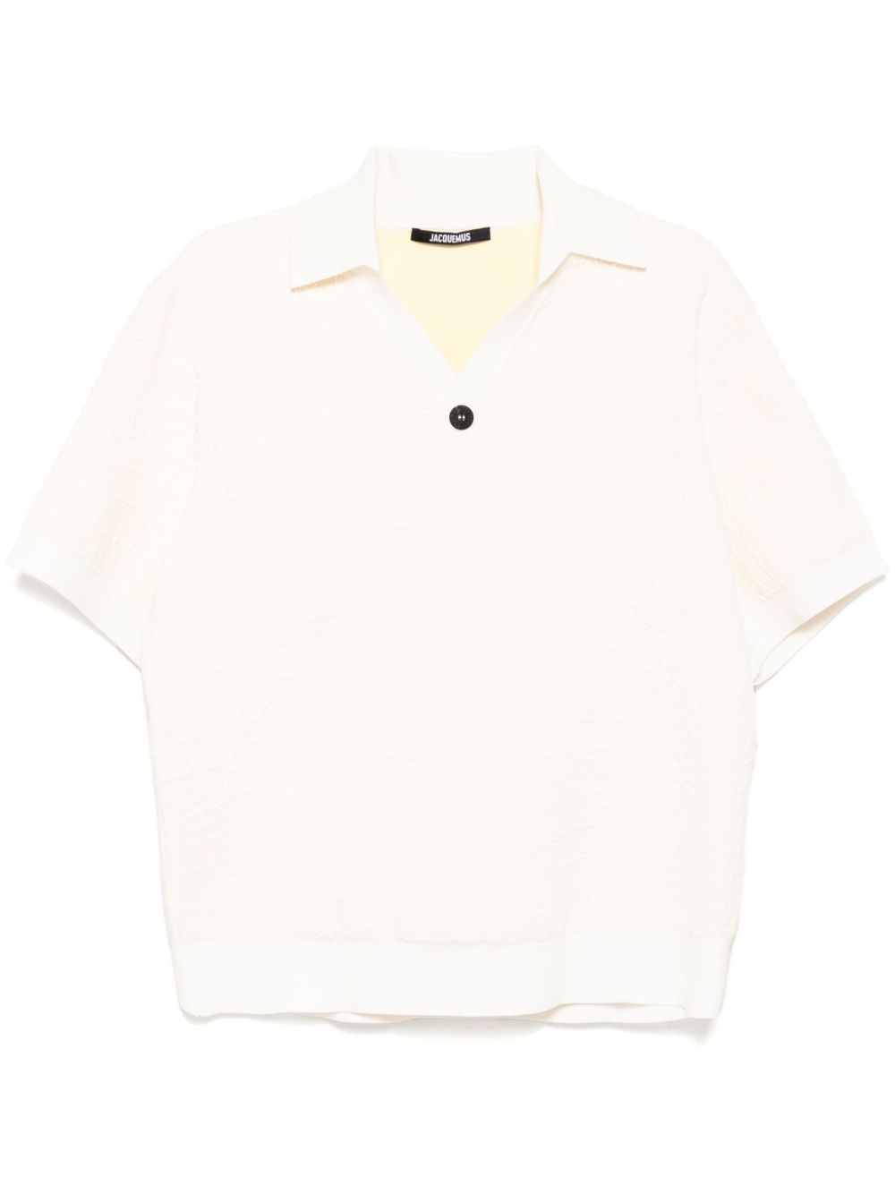 Le polo Scala top Highlights - Off-white - Polo collar - Ribbed cuffs and hem - Embossed crocodile effect - Decorative buckle detailing Imported Composition Viscose 57%, Polyimide 37%, Elastane 6% SIZE & FIT Model measurements Height 6 ft 2 in(1.88 m) Bust/Chest 34.25 in(87 cm) Hips 34.64 in(88 cm) Waist 26.77 in(68 cm) FittingInformation Designed for a relaxed fit, this piece allows for comfort and movement when worn The ribbed hem offers a close, comfortable fit Made with a midweight knit, this piece offers some stretch