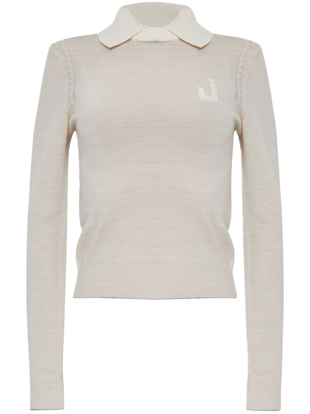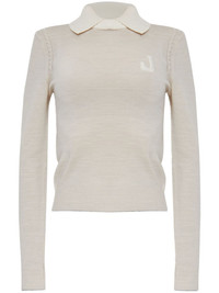 Tricot polo top Highlights - Beige - Jacquard logo motif - Polo collar - Long sleeves - Straight hem Imported Composition Wool 100% Washing instructions Read Manufacturer Guidelines