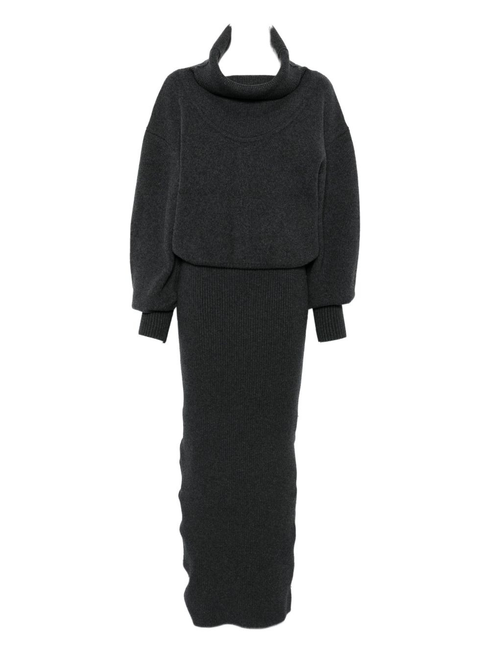 wool-blend turtleneck dress Highlights - Grey - Ribbed knit - Long sleeves - High neck Made in France Composition Virgin Wool 89%, Cashmere 9%, Polyamide 2% SIZE & FIT Model measurements Height 5 ft 11 in(1.8 m) Bust/Chest 31.49 in(80 cm) Hips 36.61 in(93 cm) Waist 24.4 in(62 cm) Washing instructions Read Manufacturer Guidelines