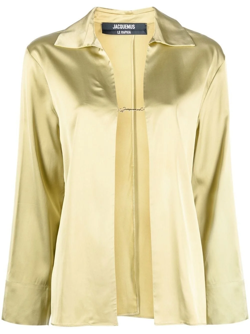 logo-plaque blouse Highlights - Butter yellow - Satin finish - Gold-tone logo lettering - Straight-point collar - Long sleeves - Straight hem Imported Composition Viscose 96%, Spandex/Elastane 4% SIZE & FIT Measurement LENGTH 25.59 in(65 cm) WAIST 35.43 in(90 cm) SLEEVE LENGTH 23.62 in(60 cm) Washing instructions Dry Clean Only