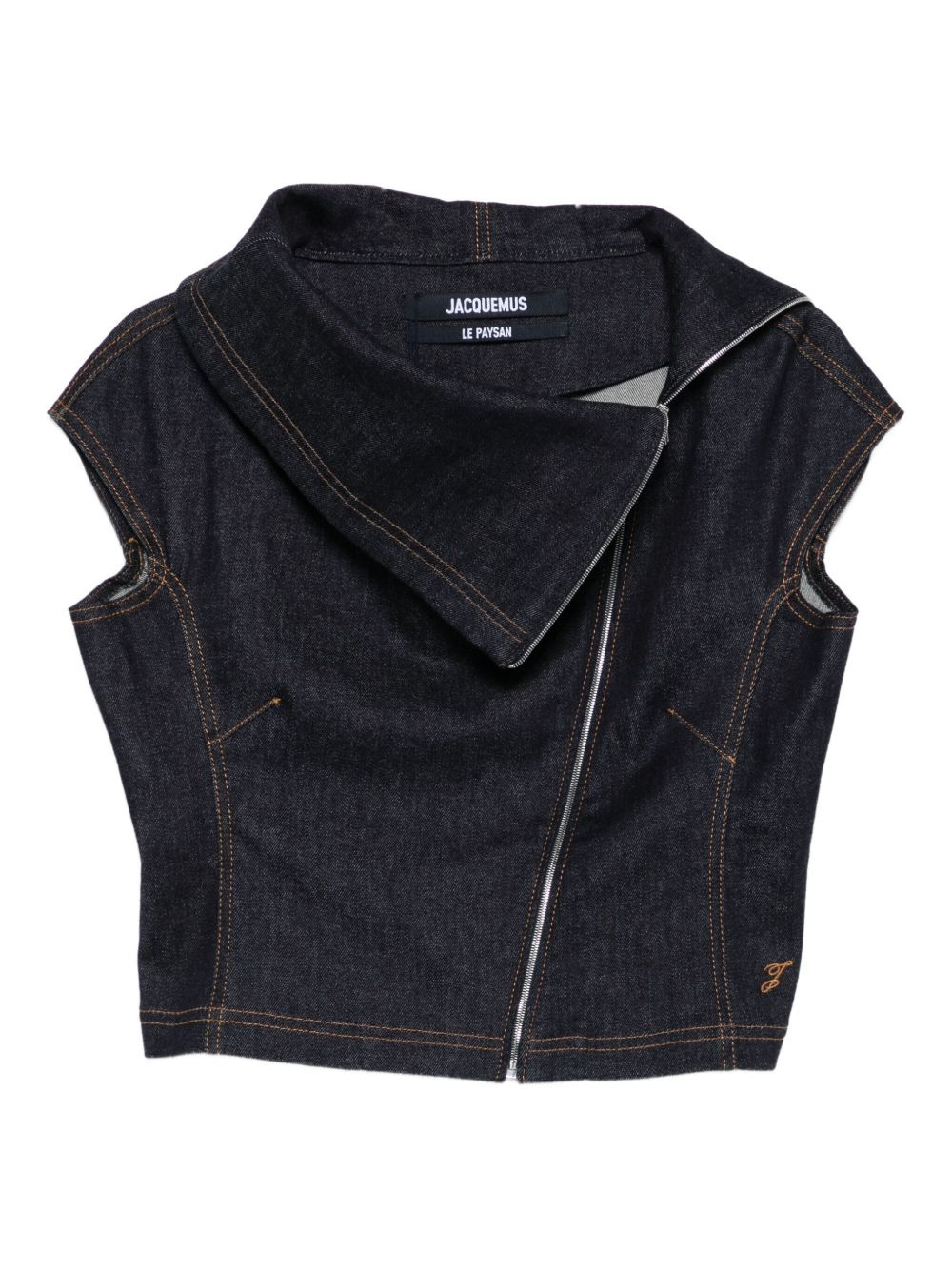 zip-front asymmetrical top Highlights - Dark navy - Asymmetrical zip fastening - Sleeveless Imported Composition Cotton 93%, Cashmere 6%, Elastane 1% SIZE & FIT Model measurements Height 5 ft 9 in(1.75 m) Bust/Chest 32.67 in(83 cm) Hips 36.22 in(92 cm) Waist 24.8 in(63 cm) Washing instructions Dry Clean Only