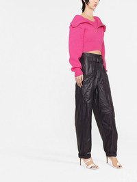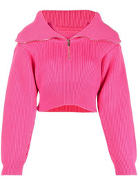 zip-up neck cropped jumper Contemporary knitwear is presented by Jacquemus with this zip-up neck jumper. This pink top has a fine ribbed design and cropped length that adds an edge to the look. Imported Composition Merino 100% SIZE & FIT Model measurements Height 5 ft 11 in(1.8 m) Bust/Chest 31.49 in(80 cm) Hips 35.43 in(90 cm) Waist 25.19 in(64 cm) Washing instructions Hand Wash