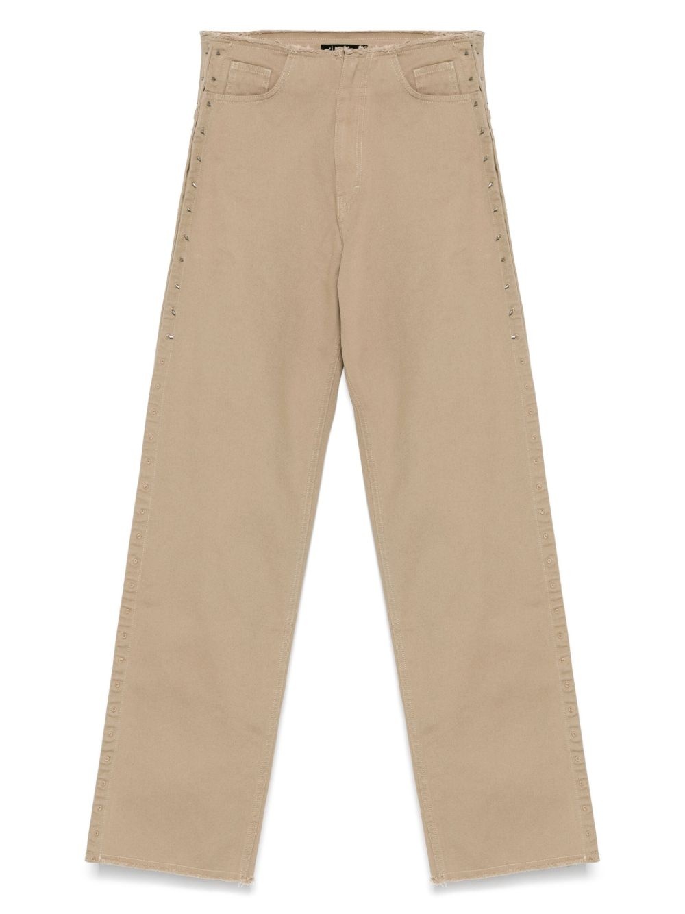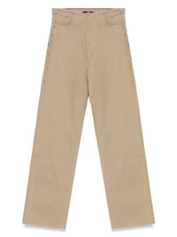 Jade trousers Highlights - Sesame beige - Concealed front zip fastening - Classic five pockets - Side slits - Stud detailing Imported Composition Cotton 100% SIZE & FIT Model measurements Height 5 ft 10 in(1.78 m) Bust/Chest 33.46 in(85 cm) Hips 36.22 in(92 cm) Waist 23.22 in(59 cm) FittingInformation Designed for a relaxed tapered cut, these trousers allow for a close fit at the waist and offer a loose fit at the thighs, with a closer fit toward the ankles Sturdy and hard-wearing, this denim piece offers no stretch