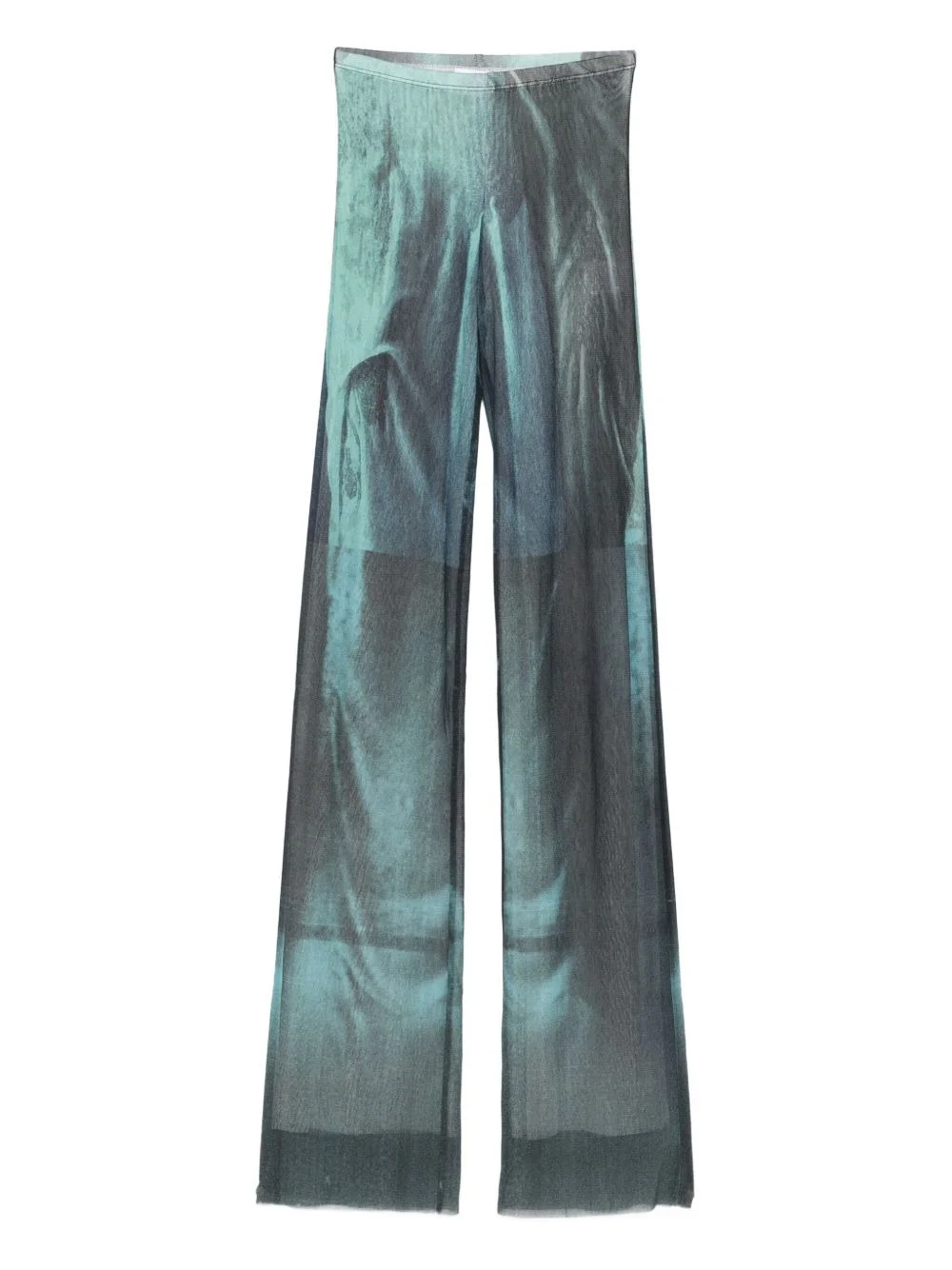 abstract-print trousers Highlights - Teal - Mesh fabric - Abstract print - High waist - Straight hem Made in Italy Composition Outer: Polyamide 100% Lining: Polyamide 100% SIZE & FIT Model measurements Height 5 ft 10 in(1.78 m) Bust/Chest 33.46 in(85 cm) Hips 36.22 in(92 cm) Waist 23.22 in(59 cm) Washing instructions Hand Wash
