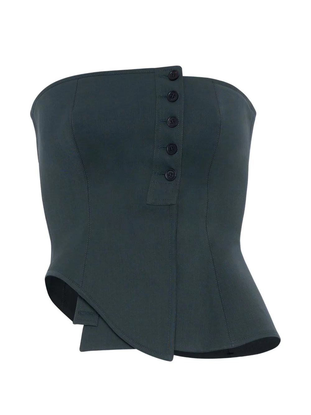 asymmetric strapless top Highlights - Military black - Button detail - Asymmetric hem - Strapless Imported Composition Polyamide 100%, Spandex/Elastane 100% Washing instructions Read Manufacturer Guidelines