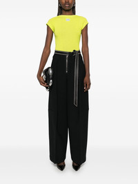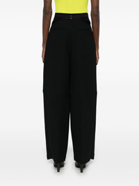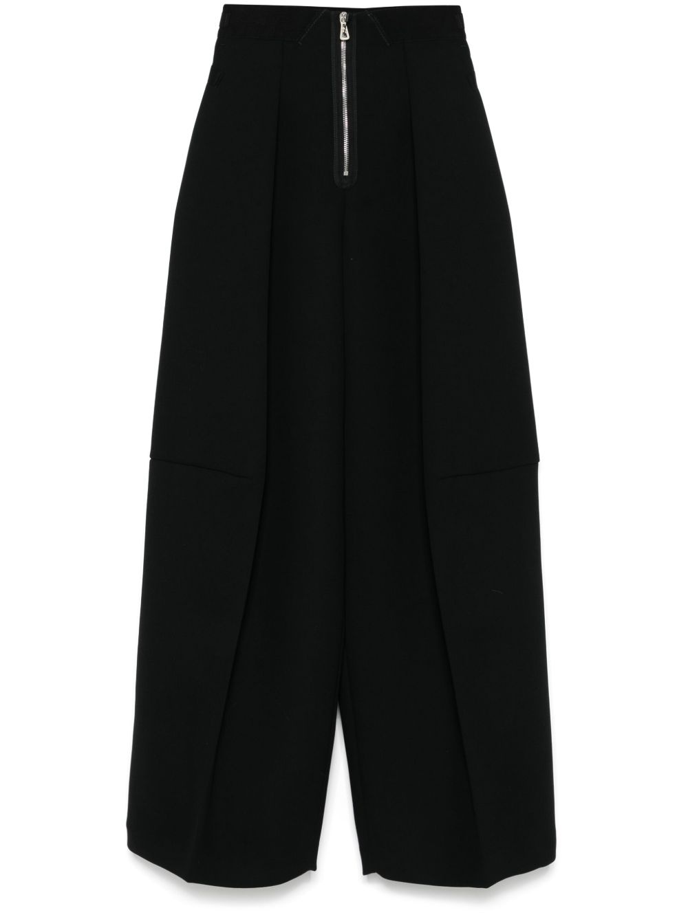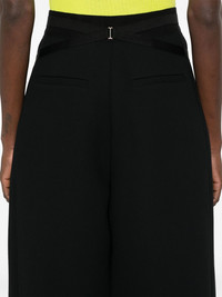 bonded crepe trousers Highlights - Black - Zip fly fastening - Adjustable strap to the rear - Two side slit pockets - Two rear welt pockets Made in Italy Composition Polyester 100%, Cotton 100% SIZE & FIT Model measurements Height 5 ft 11 in(1.8 m) Bust/Chest 32.67 in(83 cm) Hips 36.22 in(92 cm) Waist 24.4 in(62 cm) Measurement FRONT RISE 14.48 in(36.8 cm) INSIDE LEG 32 in(81.3 cm) HIPS 37.99 in(96.5 cm) Hem Width 25 in(63.5 cm) WAIST 25.98 in(66 cm) FittingInformation Designed with a wide-leg cut, these trousers allow for a close fit at the waist and offer a loose and roomy fit over the leg The elasticated waist allows for a comfortable fit Made from a midweight non-stretch fabric
