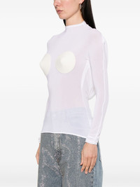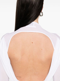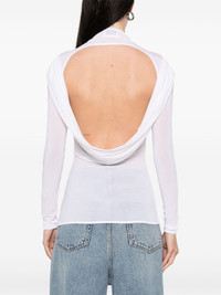 conical long-sleeve top Highlights - White - Mock neck - Open back - Draped detailing Imported Composition Viscose 94%, Elastane 6% SIZE & FIT Model measurements Height 5 ft 10 in(1.78 m) Bust/Chest 33.46 in(85 cm) Hips 36.22 in(92 cm) Waist 23.22 in(59 cm) FittingInformation Designed for a close fit throughout Made from a lightweight stretch fabric, this piece offers elasticity and flexibility when worn Washing instructions Hand Wash