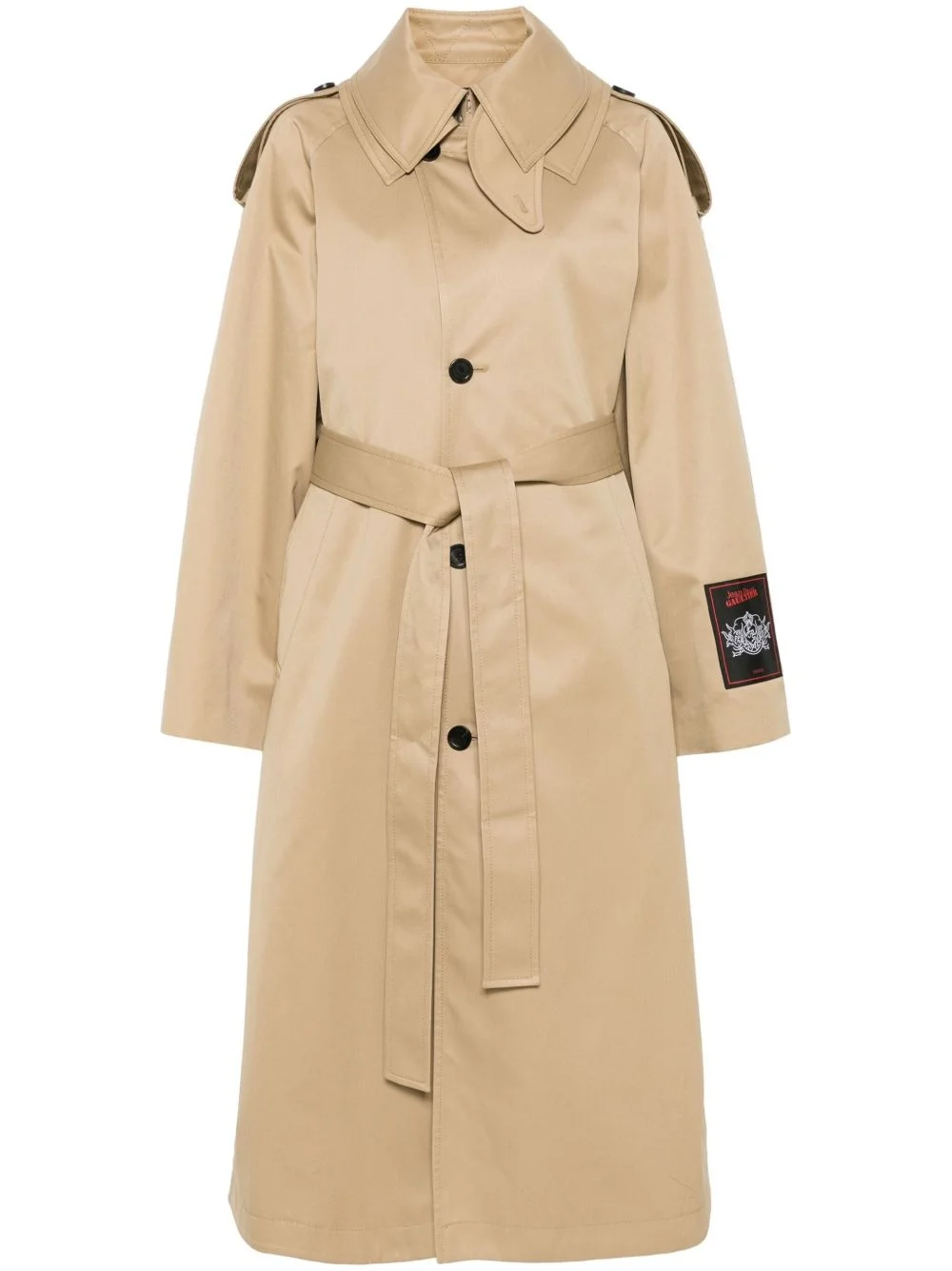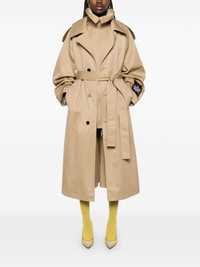 deconstructed trench coat Highlights - Beige - Front button fastening - Throat latch - Detachable and adjustable waist belt - Two side slit pockets Made in Italy Composition Cotton 100% SIZE & FIT Model measurements Height 5 ft 11 in(1.8 m) Bust/Chest 32.67 in(83 cm) Hips 36.22 in(92 cm) Waist 24.4 in(62 cm) Measurement SLEEVE LENGTH 22 in(55.9 cm) HIPS 40.98 in(104.1 cm) LENGTH 50 in(127 cm) WAIST 35.98 in(91.4 cm) BUST 42 in(106.7 cm) FittingInformation Designed to be unstructured, offering a loose fit throughout The tie fastening gives an adaptable and personalised fit Made from a midweight non-stretch fabric