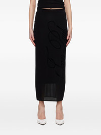 flocked-logo midi skirt Highlights - Black - Elasticated waistband - Mesh design - Full lining - Straight hem Imported Composition Viscose 94%, Elastane 6%