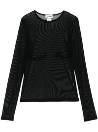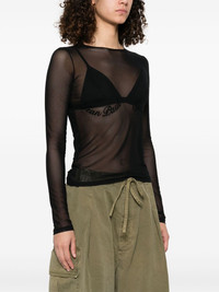 flocked-logo T-shirt Highlights - Black - Semi-sheer construction - Crew neck - Long sleeves Imported Composition Polyamide 94%, Elastane 6% SIZE & FIT Model measurements Height 5 ft 10 in(1.79 m) Bust/Chest 31.88 in(81 cm) Hips 35.43 in(90 cm) Waist 23.62 in(60 cm) FittingInformation Designed for a close fit throughout Made from a lightweight stretch fabric, this piece offers elasticity and flexibility when worn