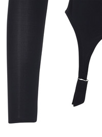 Garter high-neck top Highlights - Dark navy - High neck - Long sleeves - Fitted bodice - Suspender detail Imported Composition Viscose 94%, Spandex/Elastane 6% Washing instructions Read Manufacturer Guidelines