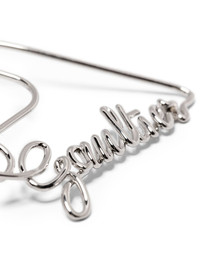 gaultier safety-pin brooch Highlights - Brass construction - Silver - Safety-pin design - Gaultier lettering - Curved shape - Clasp fastening Made in Italy SIZE & FIT Model measurements Height 5 ft 9 in(1.75 m) Bust/Chest 32.67 in(83 cm) Hips 36.22 in(92 cm) Waist 24.8 in(63 cm) Measurement HEIGHT 1.96 in(5 cm) Weight (single earring) 5 g(5 g) WIDTH 1.81 in(4.6 cm)