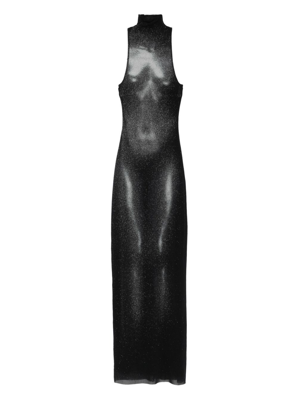 high-neck body-print dress Highlights - Black - High neck - Sleeveless - Body print - Maxi length - Glitter effect Imported Composition Polyamide 100% SIZE & FIT Model measurements Height 5 ft 11 in(1.8 m) Bust/Chest 31.49 in(80 cm) Hips 36.61 in(93 cm) Waist 24.4 in(62 cm) Washing instructions Read Manufacturer Guidelines