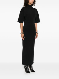 high-neck maxi dress Highlights - Black - High neck - Short sleeves - Straight hem Imported Composition Cotton 80%, Polyester 15%, Elastane 5% SIZE & FIT Model measurements Height 5 ft 10 in(1.79 m) Bust/Chest 31.88 in(81 cm) Hips 35.43 in(90 cm) Waist 23.62 in(60 cm) Washing instructions Machine Wash