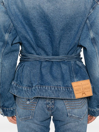 lace-up jacket Highlights - Blue - Cotton - Denim - Contrast stitching - Side lace-up fastening - Corset style - Front button fastening - Classic collar - Drop shoulder - Long sleeves - Buttoned cuffs - Chest button fastening patch pocket - Two side welt pockets - Logo patch to the rear - Straight hem Made in Italy Composition Outer: Cotton 100% Lining: Polyester 65%, Cotton 35% SIZE & FIT Model measurements Height 5 ft 11 in(1.8 m) Bust/Chest 33.07 in(84 cm) Hips 37.4 in(95 cm) Waist 25.19 in(64 cm) FittingInformation Designed to be unstructured, offering a loose fit throughout The tie fastening gives an adaptable and personalised fit Sturdy and hard-wearing, this denim piece offers no stretch Washing instructions Machine Wash