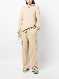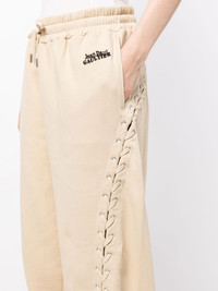 lace-up track pants Combining a minimalist silhouette with avant-garde style, Jean Paul Gaultier presents these track pants. The beige-hued pair features lace-up detailing at the side, a nod to the designer's fondness for corsetry. Highlights - Light beige - Cotton - Wide leg - Lace-up detailing - Embroidered logo to the side - Elasticated drawstring waistband - Two side slit pockets Imported Composition Outer: Cotton 100% Lining: Cotton 100% SIZE & FIT Model measurements Height 5 ft 10 in(1.78 m) Bust/Chest 30.31 in(77 cm) Hips 34.64 in(88 cm) Waist 24.01 in(61 cm) FittingInformation Designed with a wide-leg cut, these trousers allow for a close fit at the waist and offer a loose and roomy fit over the leg Particularly long in length; consider your own measurements Made from a midweight non-stretch fabric, this piece offers minimal elasticity when worn This piece fits true to size – take your usual size Washing instructions Machine Wash