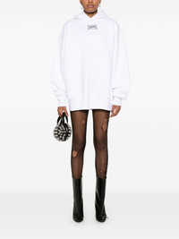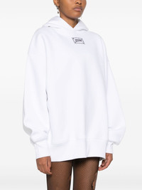 logo-print hoodie Highlights - White/black - Cotton - Jersey texture - Logo print to the front - Classic hood - Drop shoulder - Long sleeves - Ribbed cuffs and hem - Fleece lining - Straight hem Imported Composition Cotton 100% Washing instructions Machine Wash