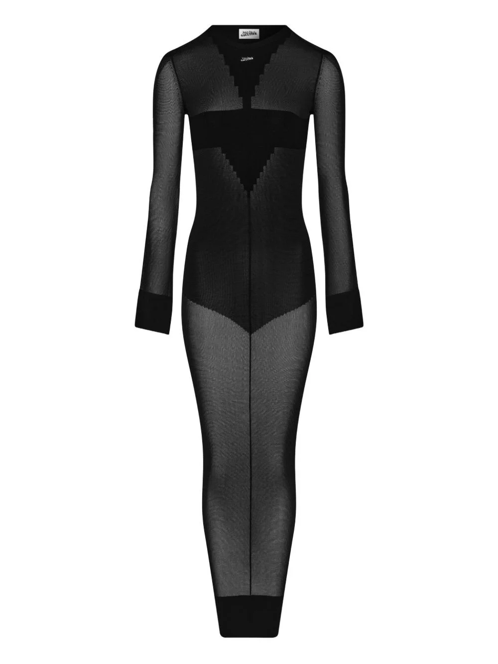 long-sleeves knitted maxi dress Highlights - Black - Round neck - Logo detail - Long sleeves - Ankle length Made in Italy Composition Viscose 100% Washing instructions Read Manufacturer Guidelines