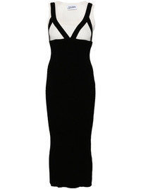 Madone ribbed-knit dress Highlights - White/black - Knitted construction - Ribbed knit - Layered design - Logo patch to the rear - Scoop neck - Sleeveless - Straight hem - Maxi Made in Italy Composition Viscose 70%, Polyester 30% SIZE & FIT Model measurements Height 5 ft 10 in(1.77 m) Bust/Chest 33.07 in(84 cm) Hips 37 in(94 cm) Waist 24.8 in(63 cm) Measurement HIPS 19.68 in(50 cm) LENGTH 49.6 in(126 cm) WAIST 17.32 in(44 cm) FittingInformation Designed for a close fit throughout Made with a midweight knit, this piece offers some stretch This piece fits true to size – take your usual size Washing instructions Hand Wash