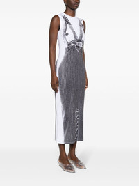 Madonna trompe l'oeil midi dress Highlights - White/black - Stretch-design - Jersey texture - Trompe l'oeil print - Round neck - Sleeveless - Pencil silhouette - Straight hem - Mid-length Imported Composition Polyester 87%, Elastane 13% SIZE & FIT Model measurements Height 5 ft 10 in(1.77 m) Bust/Chest 32.28 in(82 cm) Hips 35.03 in(89 cm) Waist 25.19 in(64 cm) FittingInformation Designed for a close fit throughout Made from a lightweight stretch fabric, this piece offers elasticity and flexibility when worn This piece fits true to size – take your usual size Measurement HIPS 32 in(81.3 cm) LENGTH 50 in(127 cm) WAIST 27.99 in(71.1 cm) BUST 30 in(76.2 cm) Washing instructions Machine Wash