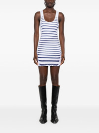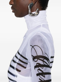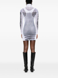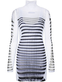 Marinere mesh minidress Highlights - White/navy blue/black - Mesh design - Semi-sheer construction - Horizontal stripe print - Logo print at the sleeve - Rear zip fastening - Layered design - High neck - Long sleeves - Internal slip dress - Straight hem - Thigh-length Imported Composition Polyester 87%, Spandex/Elastane 13% SIZE & FIT Model measurements Height 5 ft 10 in(1.77 m) Bust/Chest 32.28 in(82 cm) Hips 35.03 in(89 cm) Waist 25.19 in(64 cm) Measurement LENGTH 30.7 in(78 cm) WAIST 23.62 in(60 cm) BUST 27.55 in(70 cm) Shoulder Width 11.81 in(30 cm) FittingInformation Designed for a close fit throughout Made from a midweight stretch fabric, this piece offers elasticity and flexibility when worn This piece fits true to size – take your usual size