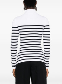 Mariniere striped jumper Highlights - White/midnight blue - Knitted construction - Fine ribbed - Horizontal stripe pattern - Tulle panel - Mock neck - Long sleeves - Straight hem Made in Italy Composition Viscose 56%, Polyester 26%, Polyamide 16%, Elastane 2% SIZE & FIT Model measurements Height 5 ft 10 in(1.77 m) Bust/Chest 32.28 in(82 cm) Hips 35.03 in(89 cm) Waist 25.19 in(64 cm) FittingInformation Designed for a close fit throughout Made with a midweight knit, this piece offers some stretch This piece fits true to size – take your usual size Washing instructions Machine Wash