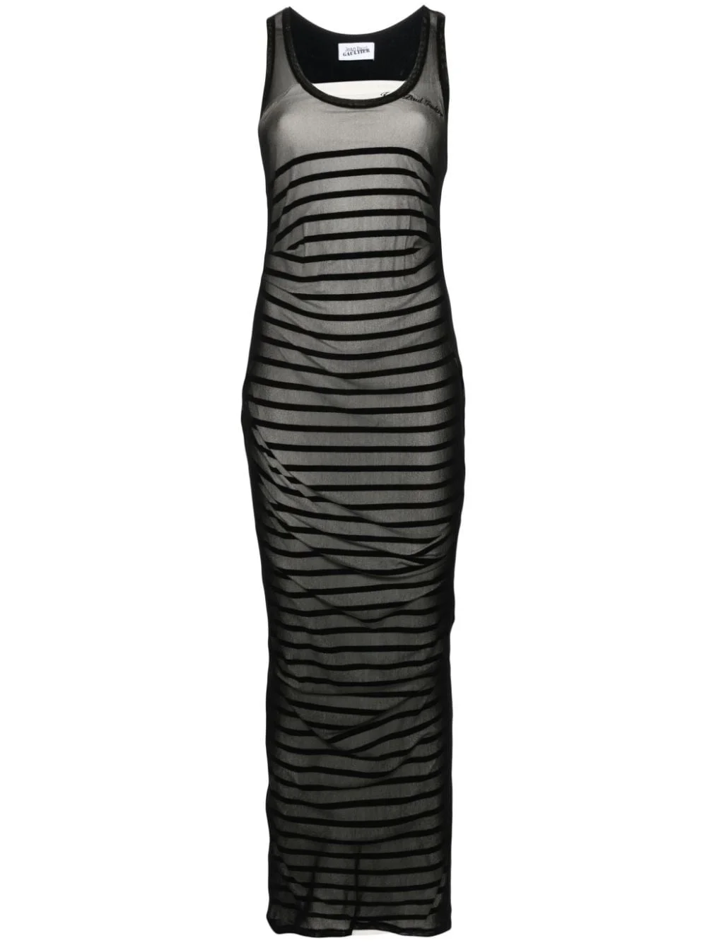 Mariniere dress Highlights - Black/white/navy blue - Tulle overlay - Double layer - Horizontal stripe pattern - Round neck - Sleeveless - Gathered detailing - Mid-calf length - Racerback - Pull-on style Made in Italy Composition Polyamide 100%, Viscose 70%, Polyester 30% Washing instructions Hand Wash