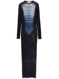 mesh maxi dress Highlights - Navy blue - Crew neck - Long sleeves - Trompe l'oeil print - Logo print to the front Made in Italy Composition Polyamide 100% SIZE & FIT Model measurements Height 5 ft 10 in(1.77 m) Bust/Chest 32.28 in(82 cm) Hips 35.03 in(89 cm) Waist 25.19 in(64 cm) Measurement SLEEVE LENGTH 26.37 in(67 cm) LENGTH 57.87 in(147 cm) FittingInformation Designed for a close fit throughout Made from a lightweight stretch fabric, this piece offers elasticity and flexibility when worn Washing instructions Hand Wash
