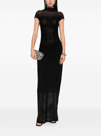 mesh-panelled maxi dress Highlights - Black - Mesh panelling - High neck - Short sleeves - Straight skirt Imported Composition Polyamide 94%, Elastane 6% SIZE & FIT Model measurements Height 5 ft 9 in(1.76 m) Bust/Chest 32.28 in(82 cm) Hips 35.43 in(90 cm) Waist 25.19 in(64 cm) Washing instructions Machine Wash