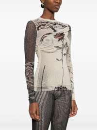 mesh top Highlights - Ecru - Crew neck - Long sleeves - Draped detailing Made in Italy Composition Polyamide 100% SIZE & FIT Model measurements Height 5 ft 10 in(1.78 m) Bust/Chest 31.49 in(80 cm) Hips 37 in(94 cm) Waist 23.62 in(60 cm) FittingInformation Designed for a slim fit that sits just away from the body offering a close yet comfortable fit Made from a midweight non-stretch fabric, this piece offers minimal elasticity when worn Washing instructions Dry Clean Only