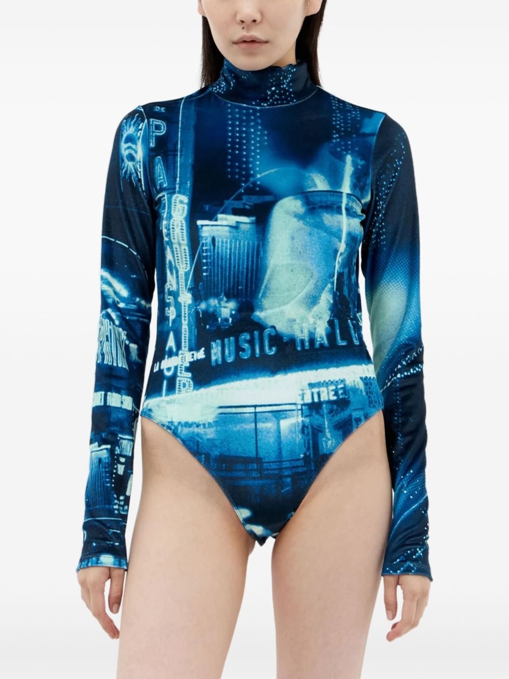Pigalle bodysuit Highlights - Royal blue - Press-stud fastening - High neck - Long sleeves - Open back - Just a reminder that this piece must be tried on over your own garments. Imported Composition Polyester 92%, Elastane 8%