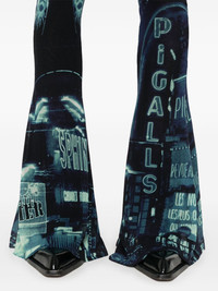 Pigalle-print flared trousers Highlights - Navy blue/multicolour - Mesh design - Semi-sheer construction - All-over pigalle print - Full-length - Mesh lining - Flared hem - Elasticated waistband Made in Italy Composition Polyamide 100% SIZE & FIT Model measurements Height 5 ft 9 in(1.76 m) Bust/Chest 31.88 in(81 cm) Hips 35.43 in(90 cm) Waist 24.8 in(63 cm) Measurement FRONT RISE 5.98 in(15.2 cm) INSIDE LEG 37.51 in(95.3 cm) BACK RISE 7.51 in(19.1 cm) HIPS 25.98 in(66 cm) Hem Width 25.98 in(66 cm) WAIST 24.01 in(61 cm) FittingInformation Designed with a flared hem, these trousers allow for a close fit at the waist with a slim fit over the leg and widening towards the hem The elasticated waist allows for a comfortable fit Made from a lightweight stretch fabric, this piece offers elasticity and flexibility when worn This piece fits true to size – take your usual size Washing instructions Hand Wash