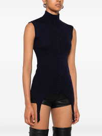 ribbed sleeveless top Highlights Made in Italy Composition Virgin Wool 100% SIZE & FIT Model measurements Height 5 ft 10 in(1.77 m) Bust/Chest 33.07 in(84 cm) Hips 37 in(94 cm) Waist 24.8 in(63 cm)