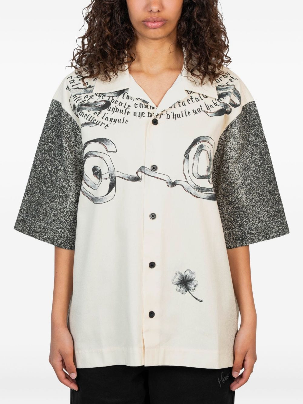 rose-print short-sleeve shirt Highlights - Beige - Rose print - Short sleeves - Speckled sleeve detail - Button fastening - Ribbon print Imported Composition Cotton 100% Washing instructions Read Manufacturer Guidelines