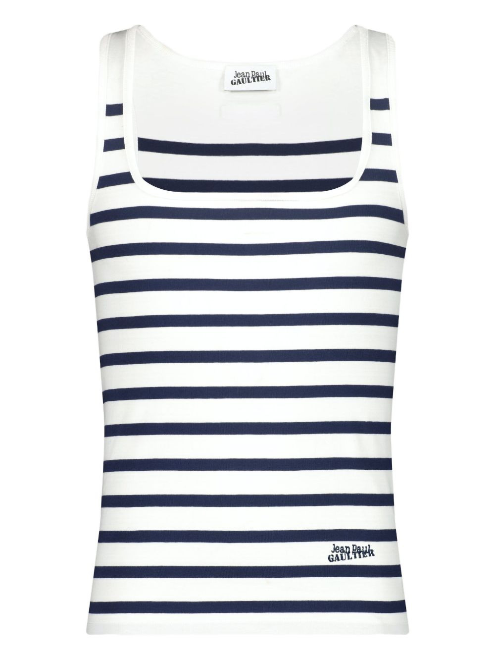 Sailor striped tank top Highlights - White/navy blue - Striped pattern - Square neck - Logo detail - Sleeveless - Straight hem Imported Composition Cotton 93%, Lycra 7% Washing instructions Read Manufacturer Guidelines