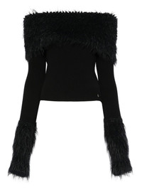 shearling sweater Highlights - Black - Off-shoulder - Ribbed knit - Long sleeves - Fur trim Made in Italy Composition Viscose 70%, Polyester 30% SIZE & FIT Model measurements Height 5 ft 9 in(1.75 m) Bust/Chest 32.67 in(83 cm) Hips 36.22 in(92 cm) Waist 24.8 in(63 cm) FittingInformation Designed for a close fit throughout Made with a midweight knit, this piece offers some stretch Washing instructions Hand Wash