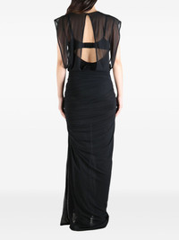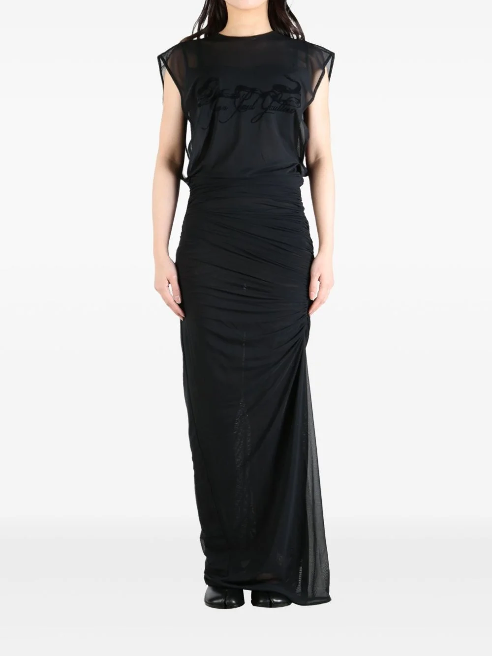slogan-flocked dress Highlights - Black - Rear hook fastening - Crew neck - Cap sleeves - Open back Imported Composition Polyamide 94%, Elastane 6% SIZE & FIT Measurement LENGTH 65.35 in(166 cm) WAIST 27.55 in(70 cm) BUST 29.92 in(76 cm) Washing instructions Read Manufacturer Guidelines